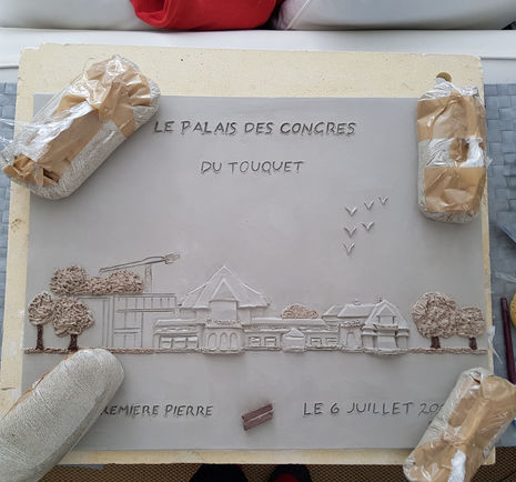 Voici les différentes étapes de la réalisation de cette plaque en terre cuite avant émaillage.